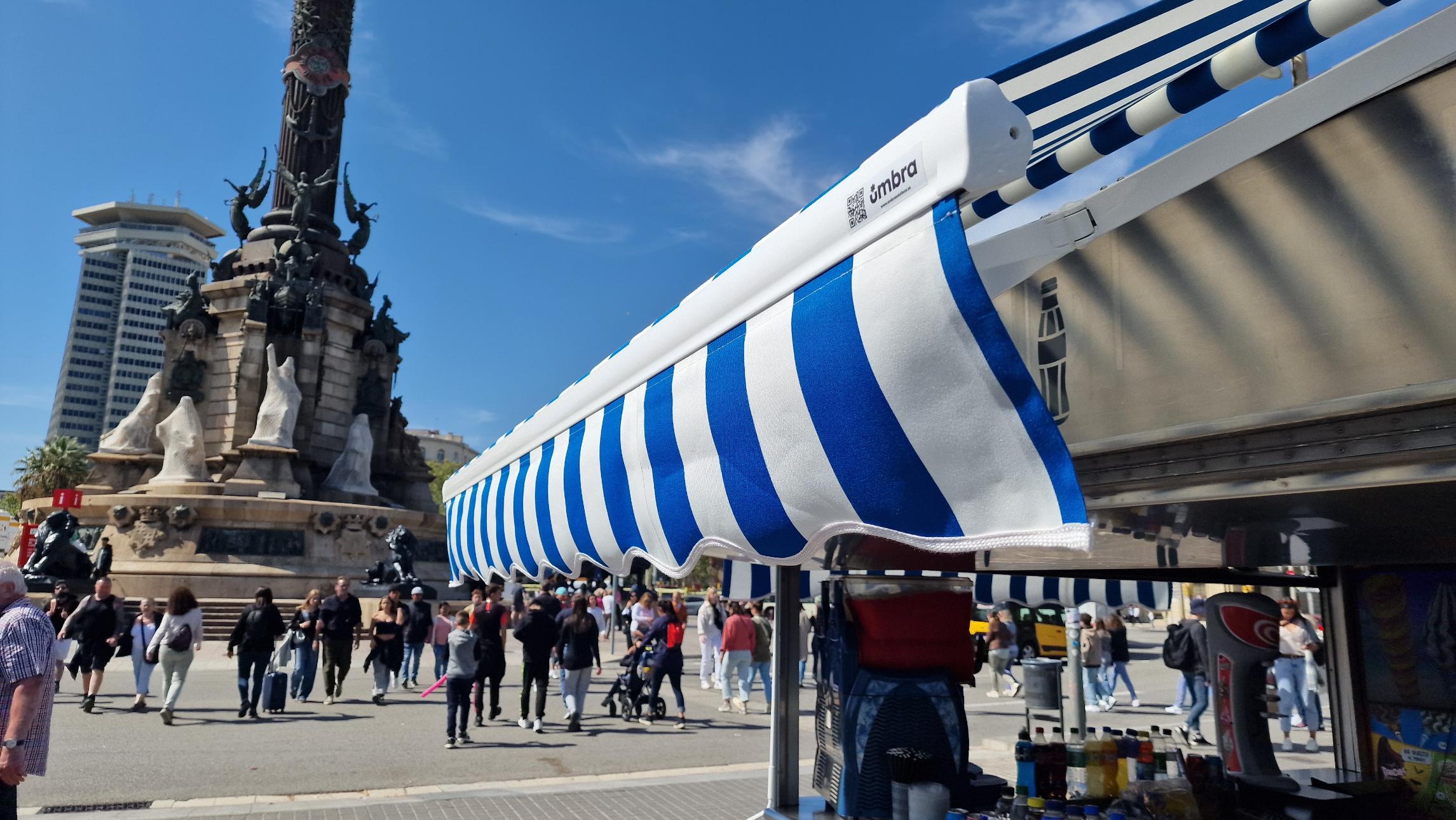 Se instalaron 3 toldos, que consiguen dar sombras en una zona totalmente soleada. Esta opción ofreció flexibilidad, confort y un diseño elegante que se integra con el entorno barcelonés.