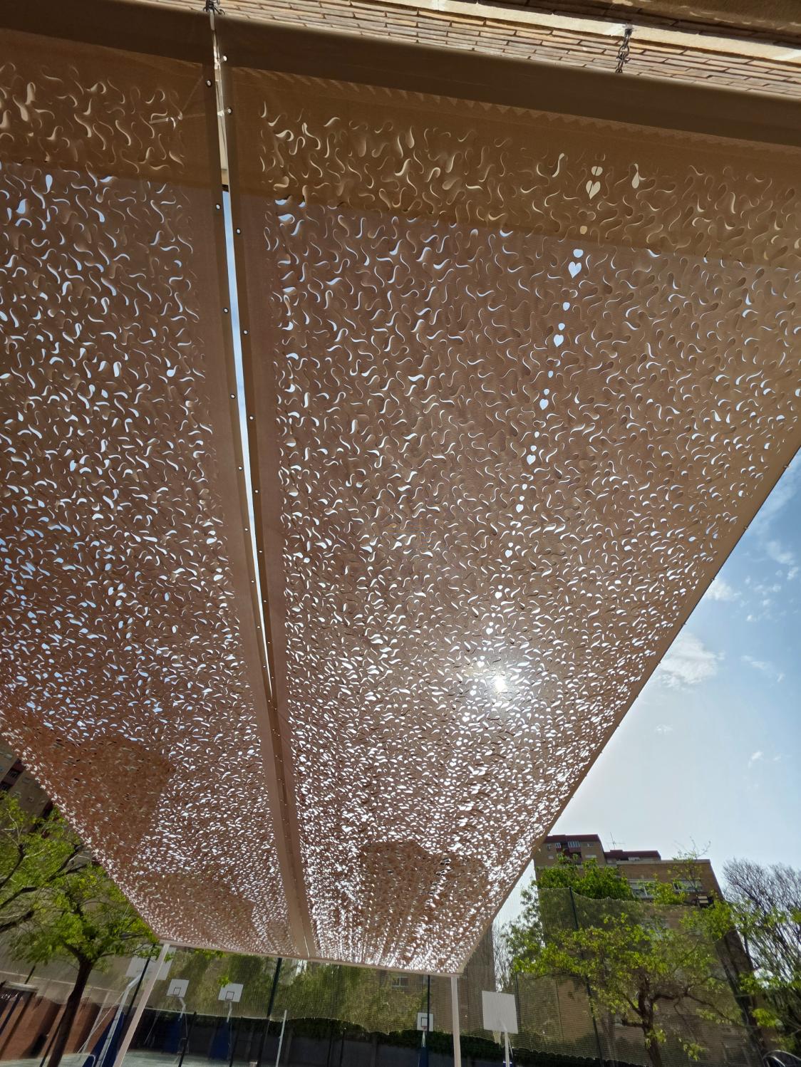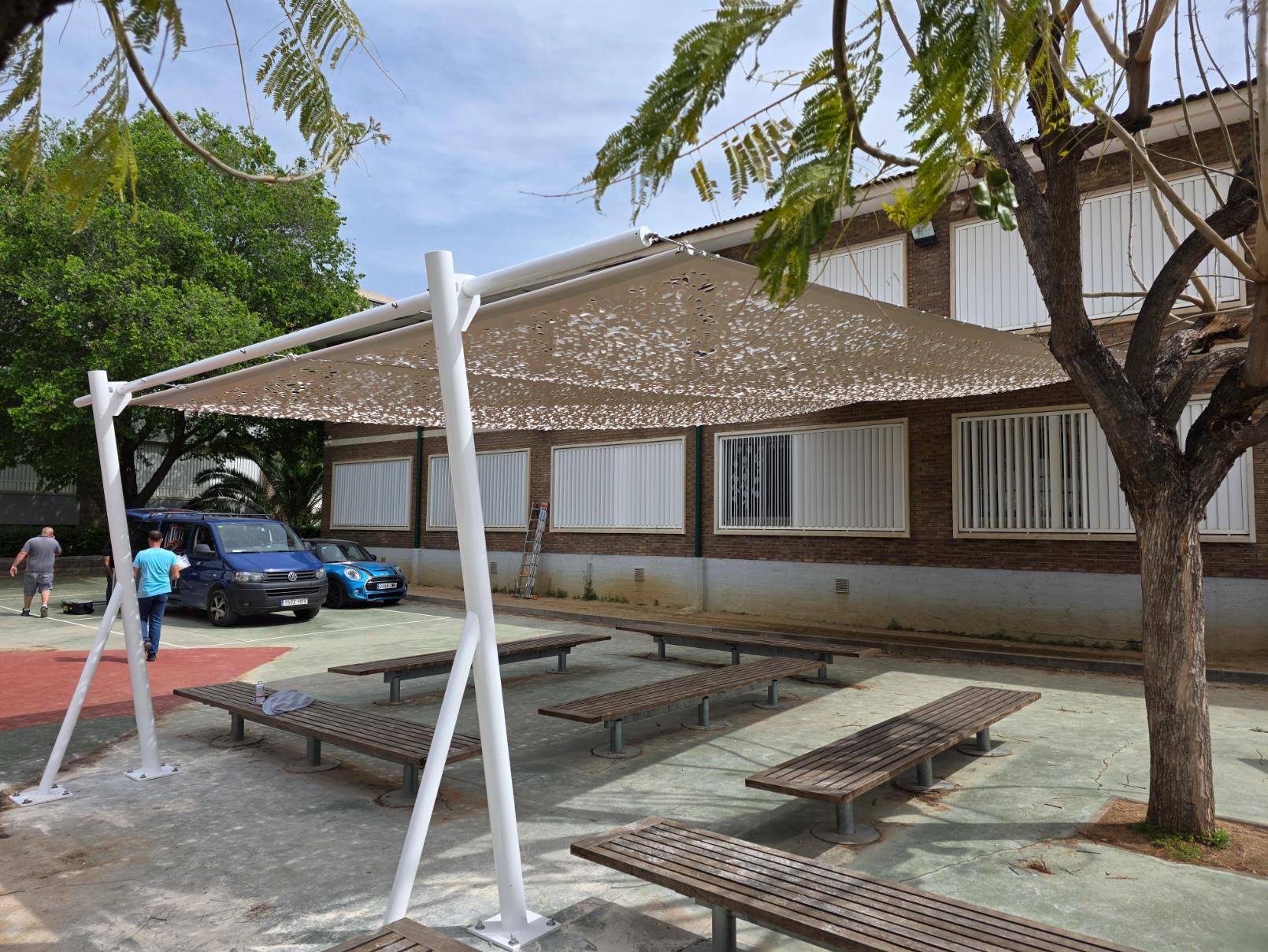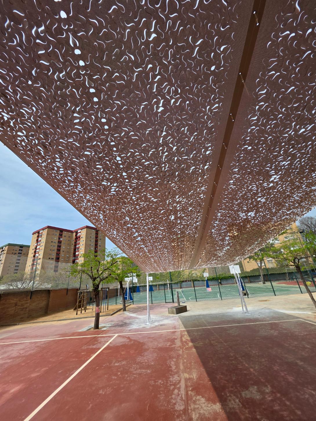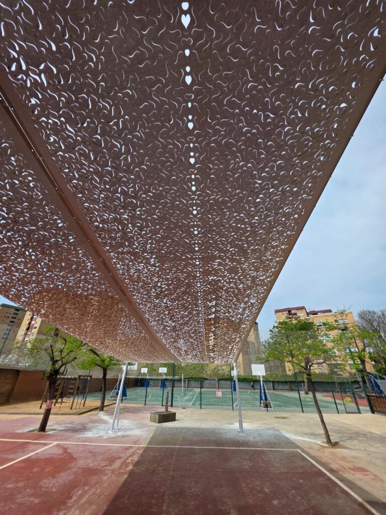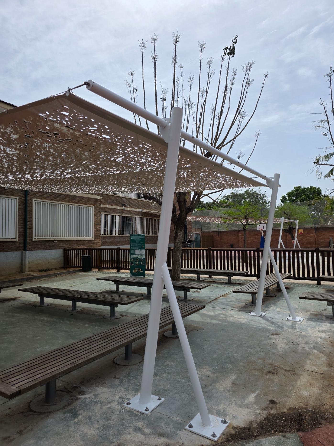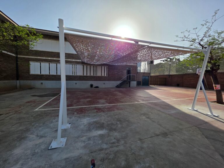 La escuela necesitaba una solución para proteger a los alumnos de las altas horas de calor y sol, protegiendo a los alumnos del sol sin comprometer la estética de la escuela.