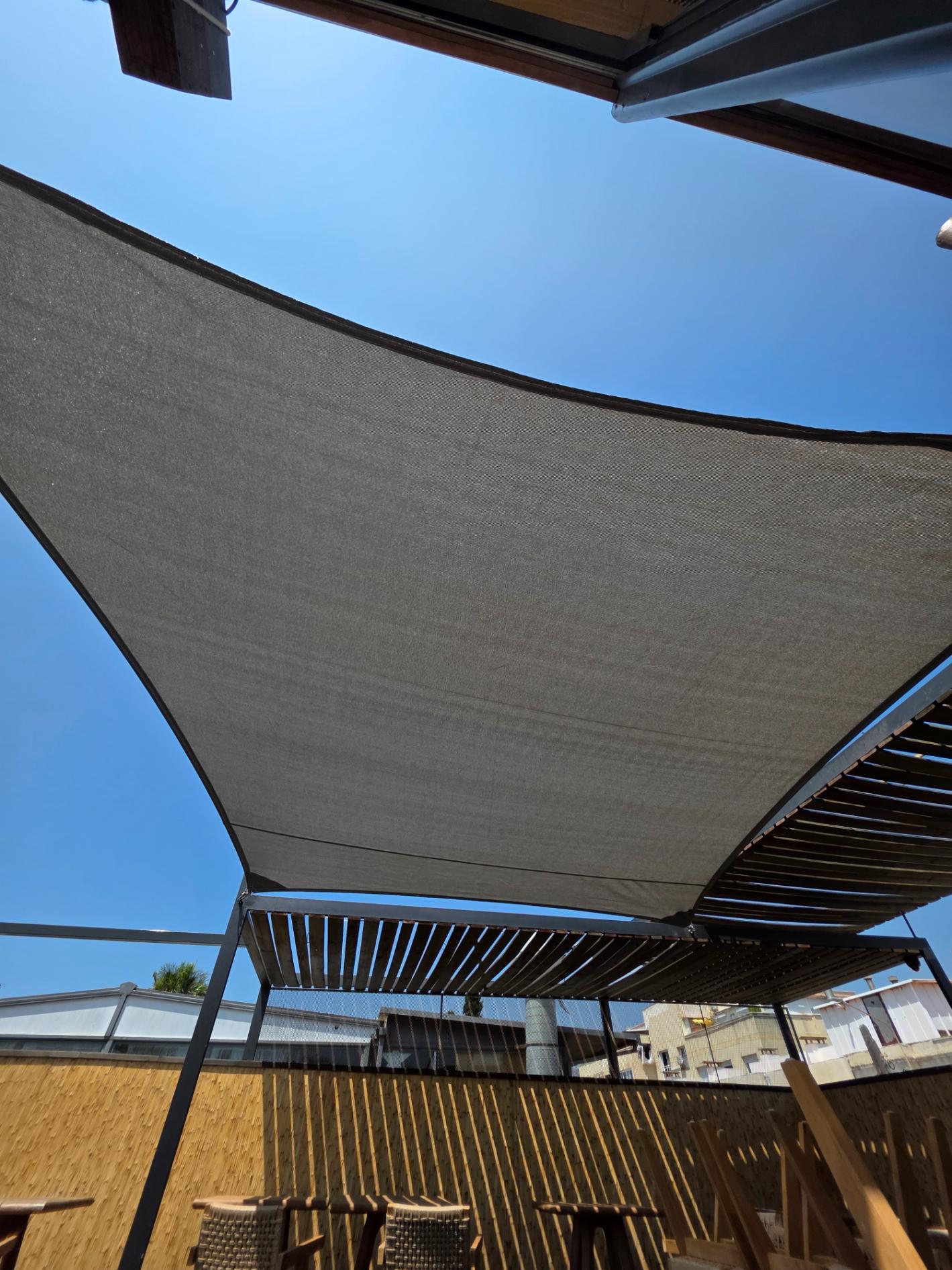 El restaurante necesitaba una solución para aprovechar su terraza todo el año, protegiendo a los clientes del sol y la lluvia sin comprometer la estética del local.